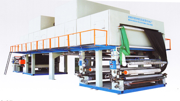 本设备采用二组上胶滚涂机头组成,顶部采用双层保温热风循环烘房,带热压贴合,冷却出布打卷成品。其性能特点可两次连续上胶,弥补了单版机一次上胶不足的缺点。又可根据市场上涂层机上做不出的产品效果,采用网纹辊筒上胶滚涂,生产出来的产品透气性、手感好,上胶均匀,花样清晰,适用于皮革、纺织面料的表面处理加工。
