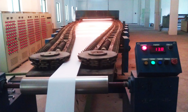 本设备使用PTFE膜材料的横向拉幅定型,该机温度均匀、采用热风循环、高、低温区加热仓、水平导轨、日本铃木布铗、拉幅出来的产品厚薄均匀、运转稳定,是加工拉幅PTFE膜最佳设备。